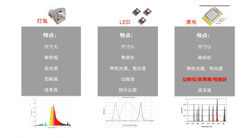 不难看出,传统灯泡是过去式,LED光源则是当下,而激光光源才是未来。那么问题来了, 激光光源拥有如此度的先天优势,为什么只运用在商用级和工业级领域,家用投影仪中则少之又少?