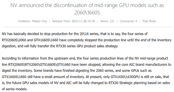 不过根据最新的消息,英伟达将要停产RTX 2060系列和GTX 1660系列显卡,而此举目的很可能是为了进一步清理RTX 30系列的库存。
