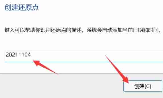 6、再输入还原点的名称,点击“创建”。