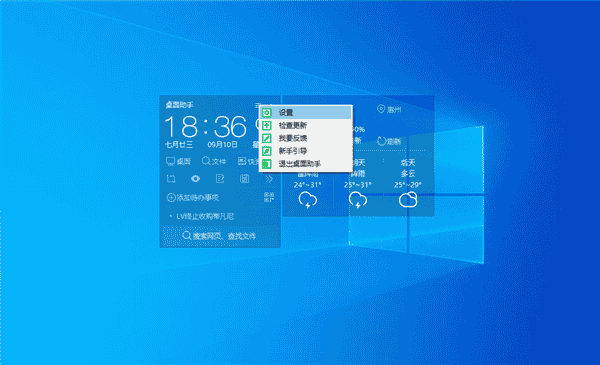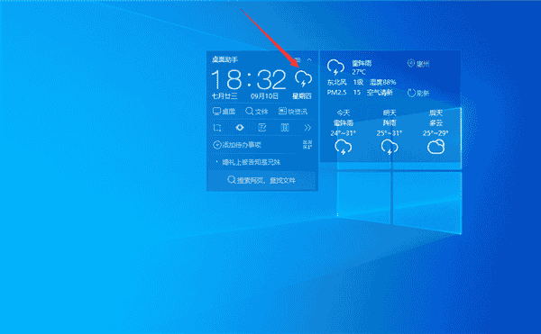 2、点击桌面助手,桌面即可弹出显示时间日期和天气的窗口。