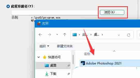 7、此程序路径下,点击浏览,找到想要禁止联网的软件;
