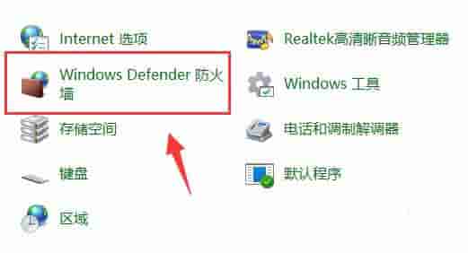 3、然后,找到并点击打开Windows Defender 防火墙;
