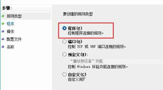 6、接着,选择程序(控制程序连接的规则),并点击下一步;