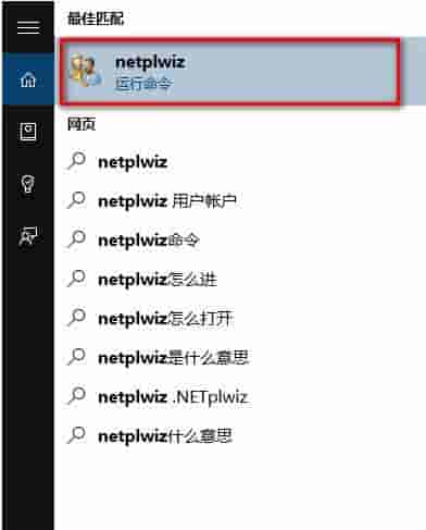 1、在搜索栏搜索“netplwiz”,单击“netplwiz”,进入页面;