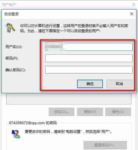 3、然后它会跳出一个“自动登陆”的窗口,两次输入注册时的密码即可(不是PIN码),最后单击确定。重启电脑试试,是不是不要输入密码。