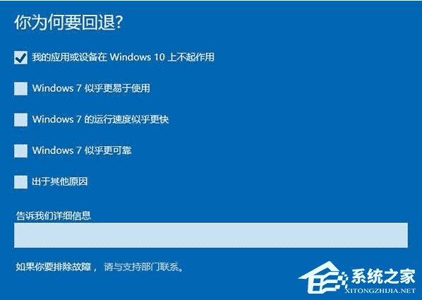 4、勾选回退系统的原因,点击“下一步”,如下图所示: