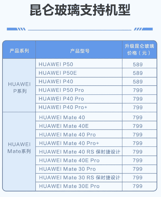 10倍耐摔!华为昆仑玻璃升级来了:支持Mate 40等15款机型 589元起