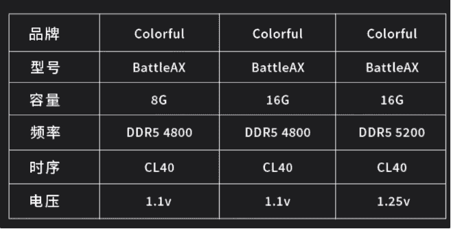 IT之家了解到,七彩虹 Battle-AX 系列内存享有 3 年保修,价格为: