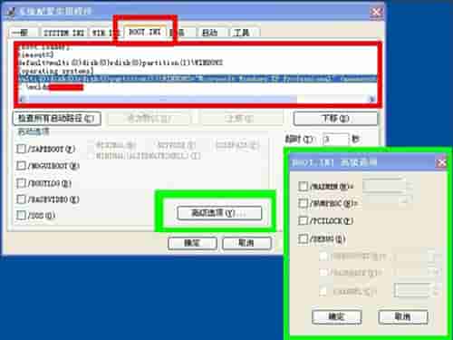 2、在打开的系统配置实用程序界面切换至“BOOT.INI”标签,在此也可编辑Boot.ini,操作完成后点击“确定”按钮使得设置生效。