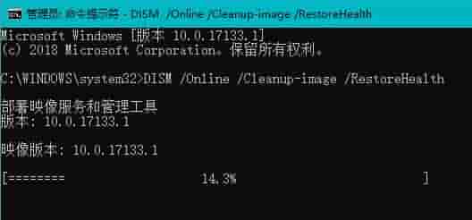 7、DISM /Online /Cleanup-image /RestoreHealth命令复制成功后,按下回车,