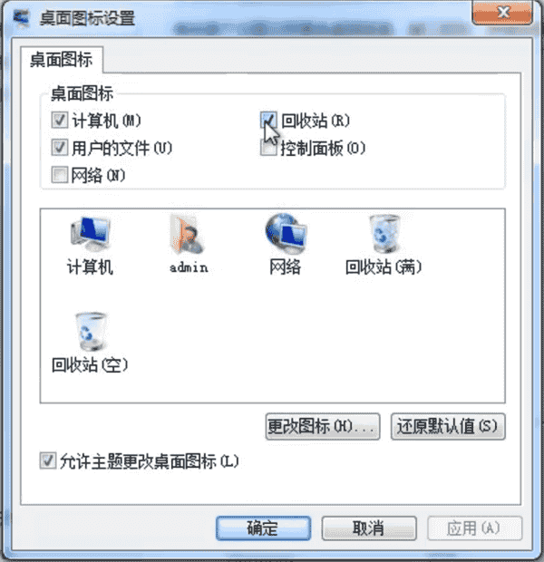 如果想让回收站再显示,可以使用同样的方法勾选即可。