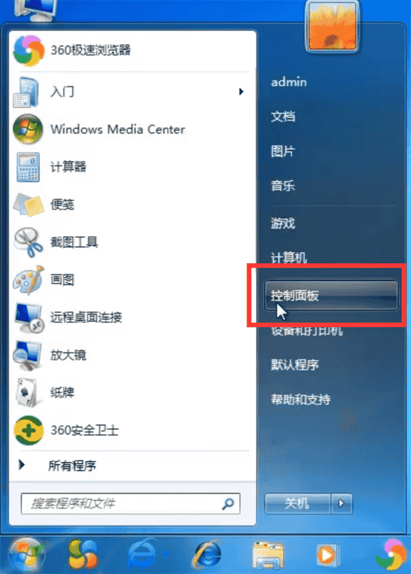 1、首先点击win7系统桌面左下方的开始菜单,然后点击打开控制面板。