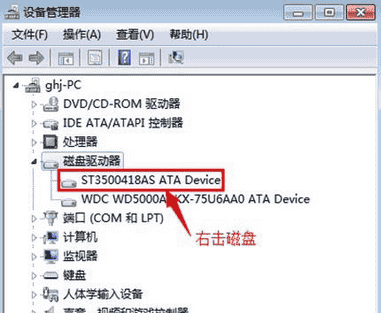 接着打开计算机管理界面后,找到设备管理器并单击打开,然后展开其中的磁盘驱动器,并在下面找到硬盘的选项。