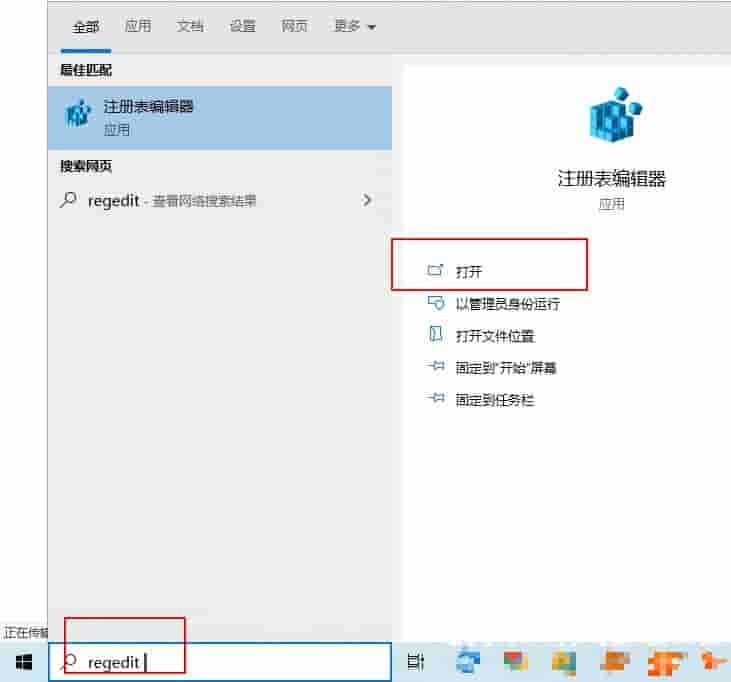 1、在桌面搜索框中输入【regedit】并打开注册表编辑器。