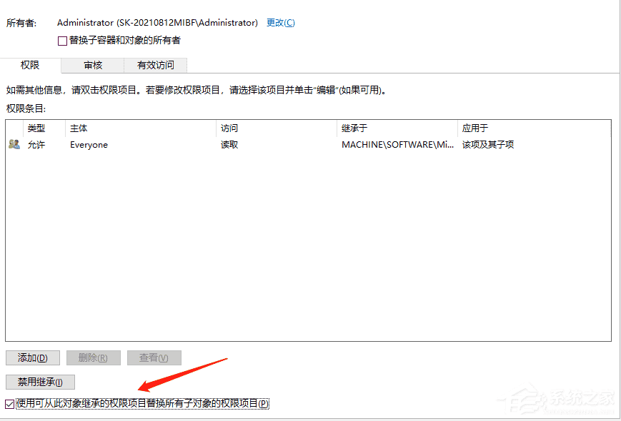 5、勾选“使用可以此对象继承的权限项目替换所有子对象的权限项目”,点击确定——是;